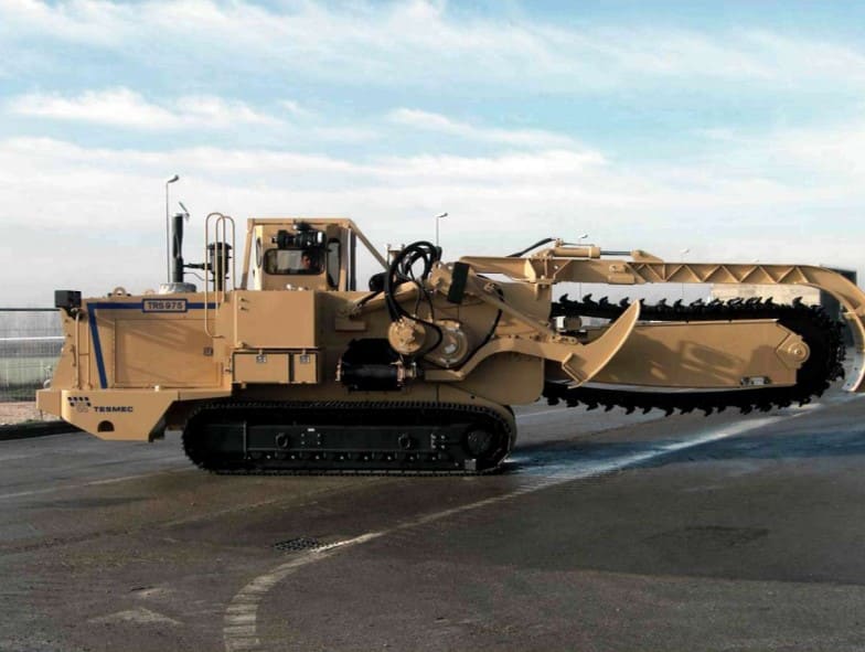 Una zanjadora equipada con tecnología de control hidráulico avanzado, ideal para excavaciones profundas en terrenos duros.
